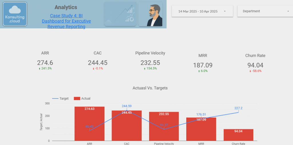 - Dashboard Design – Built custom Looker Studio dashboards segmented by executive, team, and functional views.