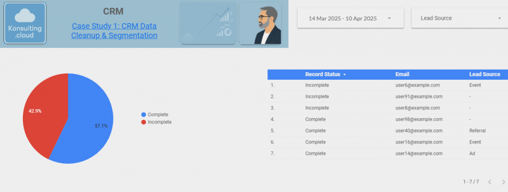 - Removed over 60% of duplicate or low-quality records, increasing CRM usability.